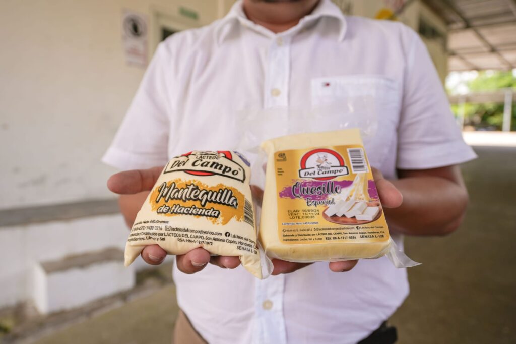 “Iniciamos con 14 productos, entre ellos: queso crema, semiseco, frijolero, quesillo especial, económico, mantequilla de hacienda, requesón y cuajada, todo elaborado de forma artesanal, esa primera entrega fue con producto a granel valorado en unos seis mil lempiras”, recuerda.