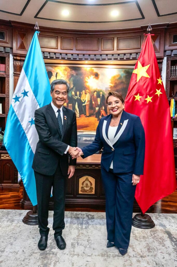 La presidenta de la República, Xiomara Castro, se reunió hoy con el vicepresidente de la Conferencia Consultiva Política del Pueblo Chino y presidente de la Fundación GX, Leung Chun Ying, con quien dialogó sobre temas de salud, educación y otros de interés bilateral.